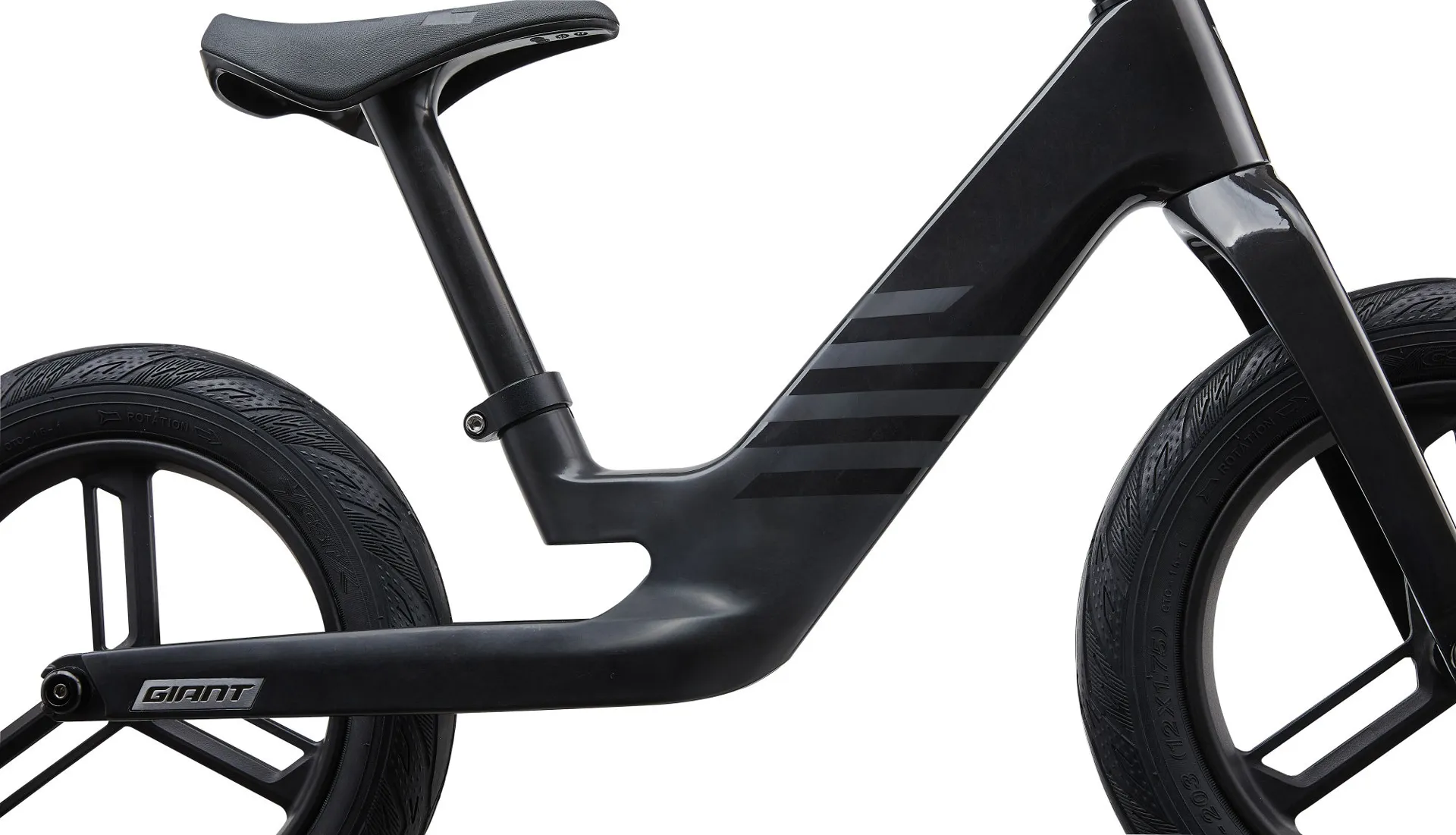 All the angles, geometry and touch points are designed specifically for smaller bodies and the unique dynamics of a balance bike. The head tube and fork are adjusted to a slightly steeper angle to improve cornering, agility and quickness. The carbon handlebars have a smaller diameter and soft grips for a secure, comfortable hold. And the kid-sized saddle is ergonomically designed with a soft, non-slip material to ensure comfort during long riding sessions.