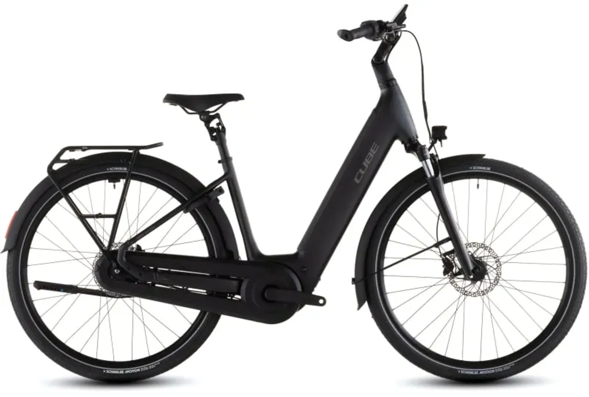 The devil is always in the detail. With the Supreme Hybrid frame, Bosch's Performance PX motor provides quiet and smooth pedal assistance up to 90Nm. The 600Wh Bosch PowerTube battery is stowed neatly inside the down tube, while Smooth Welding complements the frame's clean, almost organic lines. Integrated Cable Routing and X-Connect keep wires and cables out of sight and out of harm's way. There's a wide range of sizes from 42cm to 58cm, so everyone should be able to find their ideal fit. The Semi-Integrated Carrier 2.0 is equal parts neat and sturdy, giving you a solid platform on which to carry... well, whatever you need. And Cube added mudguards, a full lighting system and a kickstand, so you really are all set.