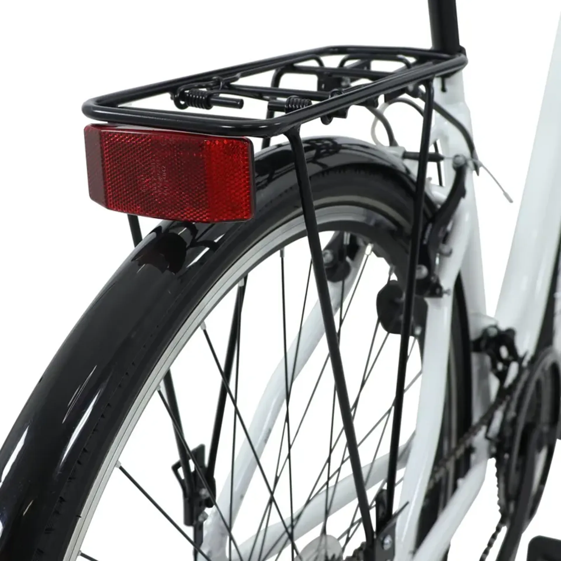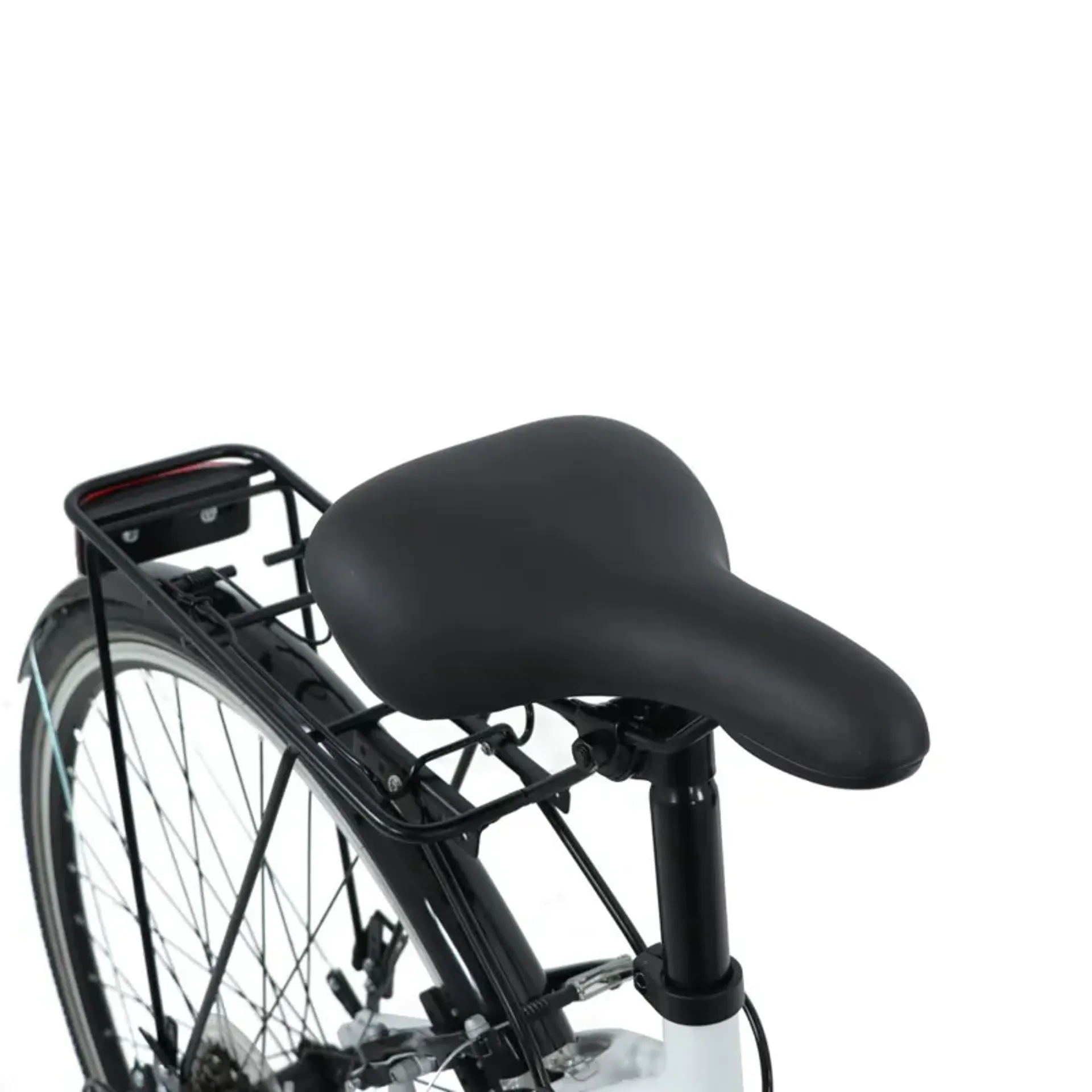Fully equipped with mudguards and a rear pannier rack that add practicality for everyday use. Swept-back handlebars, ergonomic grips, and a padded saddle make each ride smooth and enjoyable.